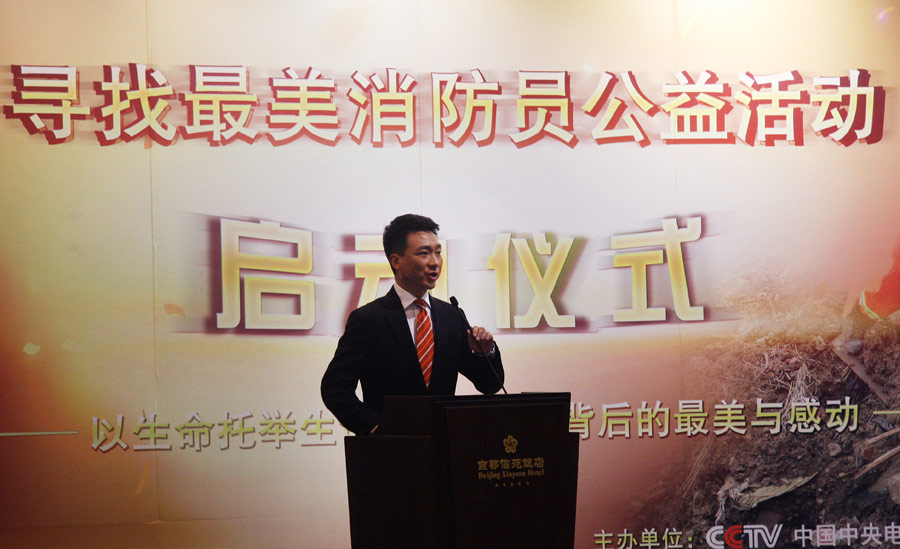 主持人康辉宣布“寻找最美消防员”大型公益活动启动仪式正式开始